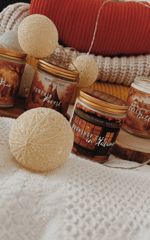 Unsere Bookshop Café in Autumn-Kerze riecht nach frisch gebackenem Kürbiskuchen, warmer Vanille und einer Prise Gewürze – wie ein Nachmittag in deiner Lieblingsbuchhandlung mit dem besten Kaffee der Stadt.