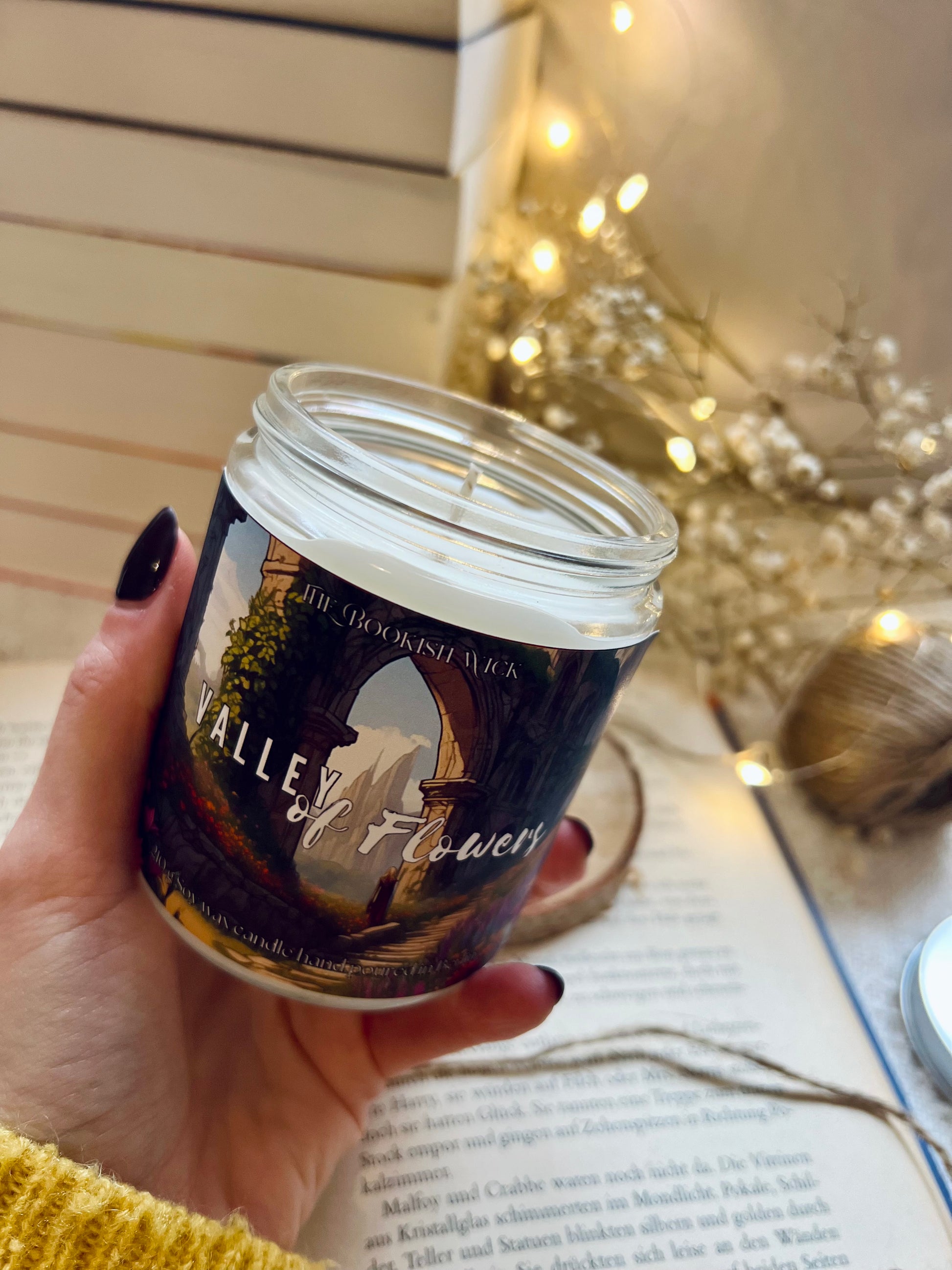Unsere Duftkerze Valley of Flowers ist eine poetische Hommage an die Welt von The Witcher von Andrzej Sapkowski. Der zarte Duft von Pfingstrosen entführt dich in das blühende Tal der Blumen, bekannt aus der Welt des Hexers Geralt. Eine Ode an die Natur.